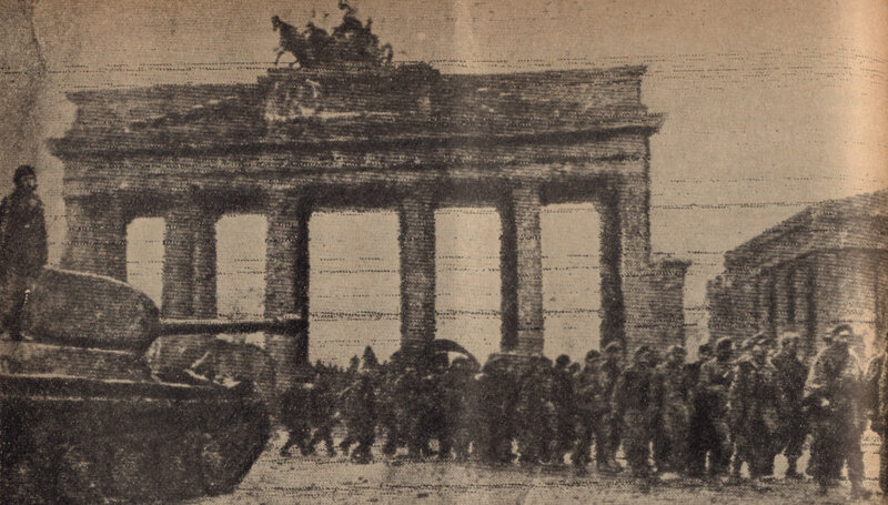 “We go down the street toward the regimental staff headquarters. The battle seems a considerable distance away. Suddenly a Red Army tommy-gunner sticks his head around a corner, signals to us to duck back into a driveway. Later, after making his way through the backyards, he reaches us and says: ‘If you had gone ten yards further they’d have dropped a grenade on you from the window. Two floors of that house are still full of Germans. I am stationed here with a platoon to see whether they will run up a white flag or try to fight their way out. We are ready in either case’.”